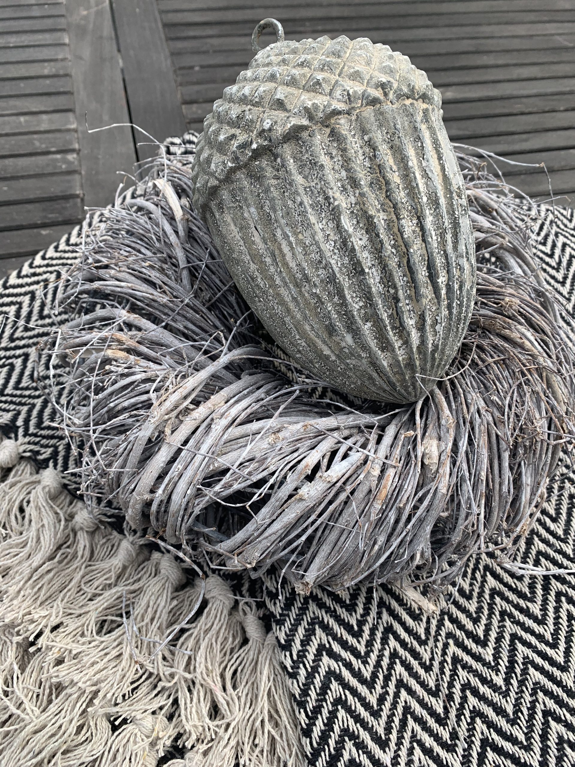 Holzkranz in weiss/grau Durchmesser 25 cm